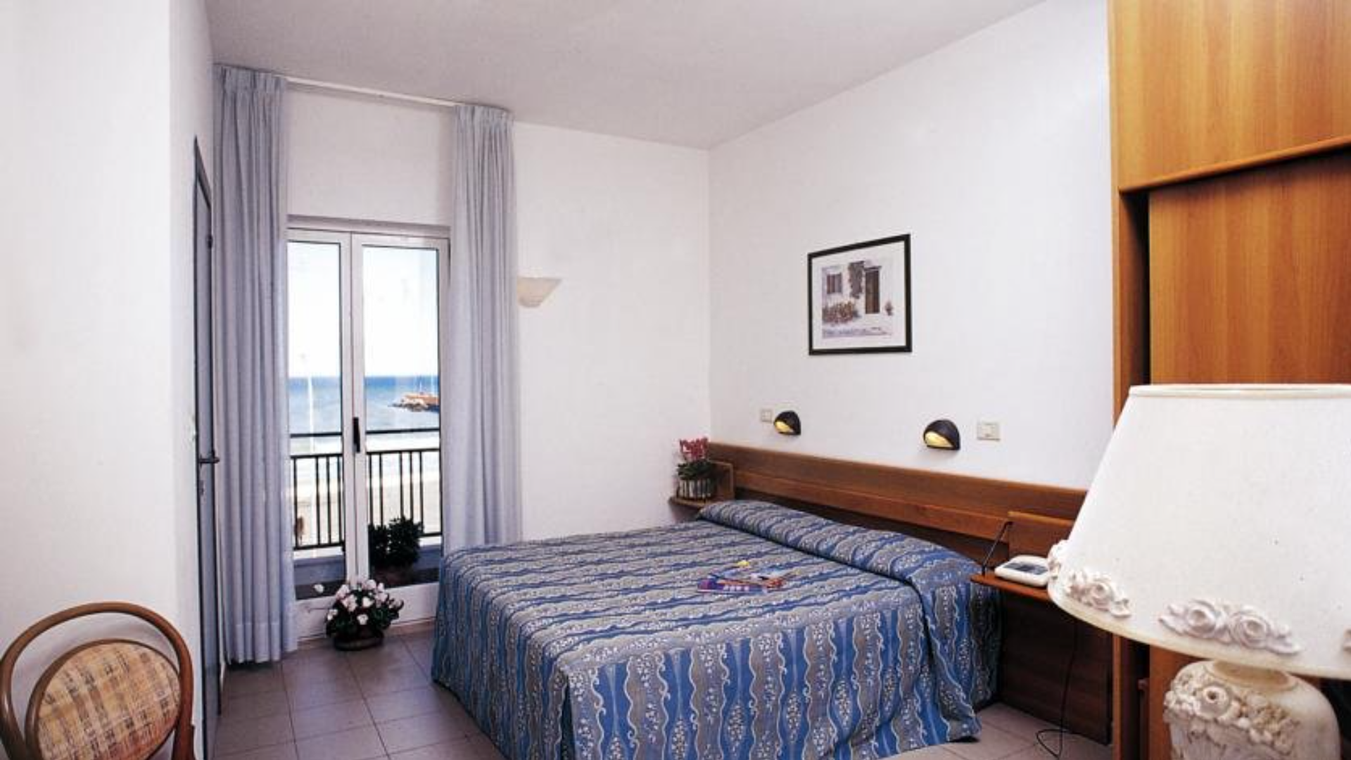 Camere Vista Mare: disponibili come matrimoniali, triple e quadruple con divano letto a castello, sono dotate di balcone e toilette vintage (alcune sono sprovviste di bidet);