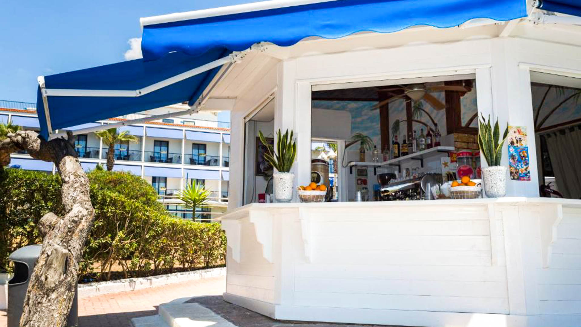 La spiaggia si trova a 20 metri dal Tico's Hotel ed è caratterizzata da sabbia bianchissima bagnate da un mare dolcemente digradante, ideale per la balneazione dei più piccoli. Premiata per la 5° volta consecutiva con la Bandiera Blu, la spiaggia è attrezzato con snack bar e servizi immersi nel verde, quali la zona dedicata al Mini Club. Presente nello stabilimento anche sedia Job per gli ospiti con disabilità.